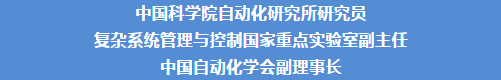 中国科学院自动化研究所研究员,复杂系统管理与控制国家重点实验室主任,ft体育下载院长。现任IEEE计算社会系统汇刊(IEEE Transactions on Computational Social Systems)、指挥与控制学报主编。曾任自动化学报、IEEE/CAA JAS、IEEE智能交通系统汇刊(IEEE Transactions on Intelligent Transportation Systems)、国际智能控制与系统杂志和IEEE智能系统(IEEE Intelligent Systems)主编及多份IEEE以及其它国际期刊主编、副主编或编委。现任中国自动化学会监事长、IEEE射频识别理事会(IEEE Council on RFID)主席、IEEE SMC学会副主席。2003年起先后当选IEEE、INCOSE、IFAC、ASME和AAAS等国际学术组织Fellow。2007年获国家自然科学二等奖和ACM杰出科学家称号,2014年获IEEE诺伯特•维纳奖。